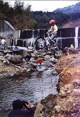 1989年黒山健一君のために世界で初めてのオールアルミフレームの トライアルバイクを製作 健一君のライディングでU.C.I.世界チャンピオンになる。(89.90年連続) 写真は秦野市のトライアルパーク ページトップに戻る