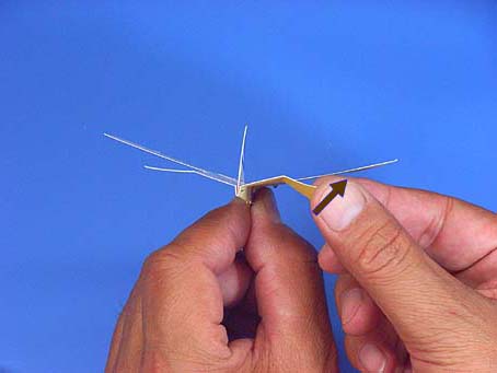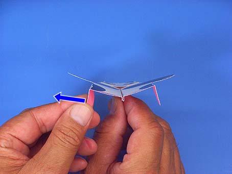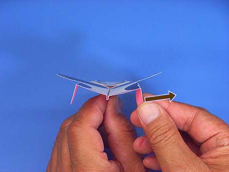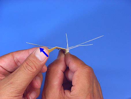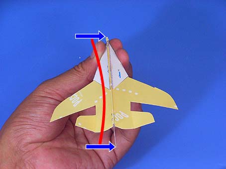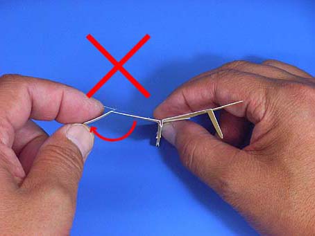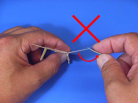 まがっているぶぶんを(やじるしのほうこう)に(すこし)まげます。