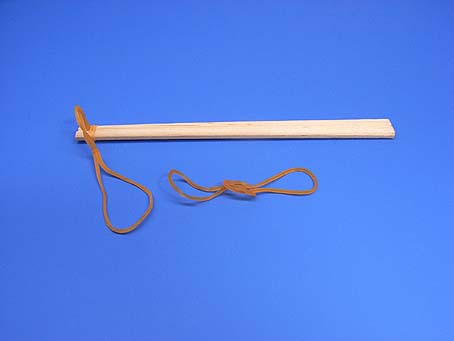 わごむ2ほんをわりばしにとりつけます。