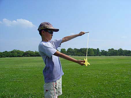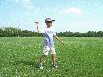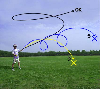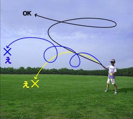ひろいばしょで、おもいっきりとばすばあいのとばしかたです