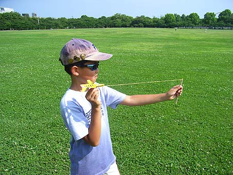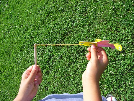 ひこうきとゴムをもつ(て)をみぎひだりいれかえてみる