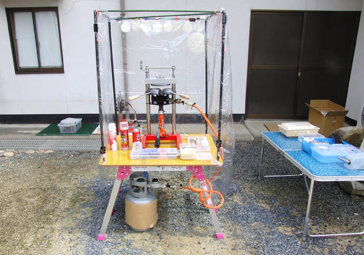 プロパンと電気が必要なことと、軽バン車載では作業高さが必要なこともあり購入を断念しましたが